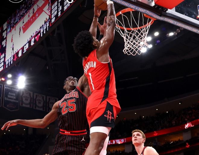 这里面原因我们也分析了,其实就两点,杜兰特和年轻糙汉不兼容,乌度卡临场调配能力一般。而送走了杜兰特的太阳,如今排名已经反超火箭。回顾一下比赛,开场武切维奇轻松吃饼+特雷琼斯轰三分球,小贾和杜兰特跳投回应,奥克吉反击暴扣。杜兰特手感火热,但奥克罗和琼斯下三分雨,火箭始终处在追分态势。后半段亚当斯吃饼+申京强攻+谢泼德下三分雨,火箭瞬间打停公牛,节末戴维森抛投,第一节火箭29-24领先。进入第二节,武切维奇和特雷琼斯内外开花,乌度卡愤怒叫暂停,火箭没人防守。
