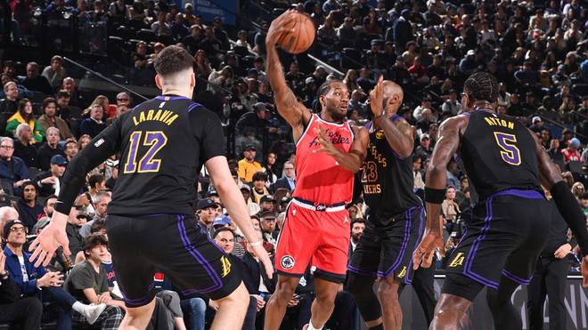 北京时间1月23日,NBA常规赛继续火热进行。快船坐镇主场挑战湖人,洛城德比毫无疑问是当天的焦点之战。此役是两队本赛季的第三次交手,前两战双方互有胜负。里夫斯伤停,雷迪克的首发五虎依然是勒布朗詹姆斯、卢卡东契奇、艾顿、斯马特与拉拉维亚。比尔赛季报销,保罗与球队分道扬镳,琼斯、博格达诺维奇伤停,伦纳德伤愈复出,泰伦卢的首发五虎是伦纳德、哈登、祖巴茨、科林斯与邓恩。快船的6连胜被公牛终结,他们期待强势反弹。