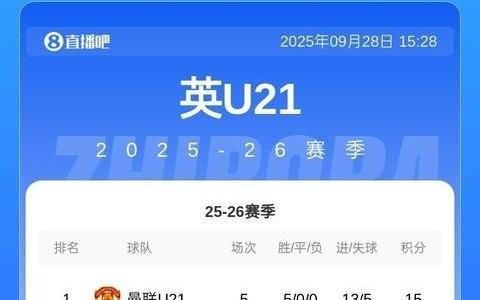 5战全胜!曼联U21队41水晶宫U21队,领跑联赛积分榜