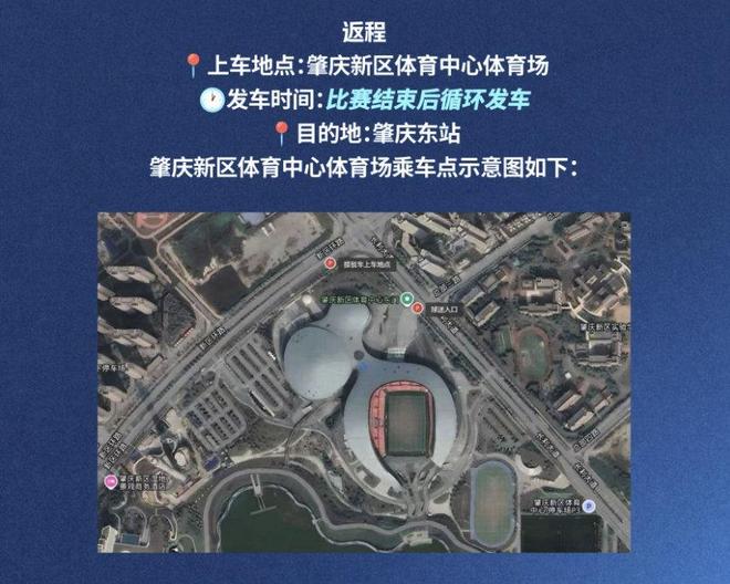 肇庆新区体育中心也是一个专业足球场,只是主队现场观赛球迷人数减少。深圳新鹏城俱乐部付出人力物力财力和各路资源,为了方便乘坐高铁或动车抵达的球迷前往观赛,俱乐部特别安排由肇庆东站往返肇庆新区体育中心体育场的免费接驳车服务,最大限度地让球迷为主队加油呐喊。